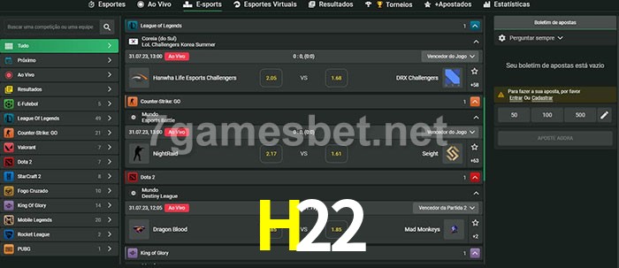 A aposta H22 oferece aos jogadores a experiência mais conveniente de apostas em eSports!